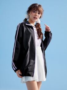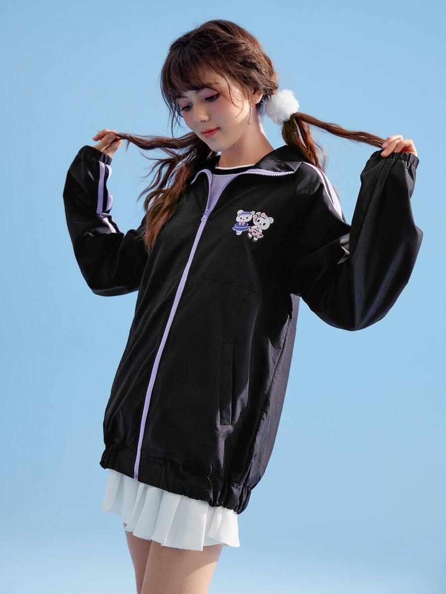 Kawaii Giacche righe con grafica fumetto con zip