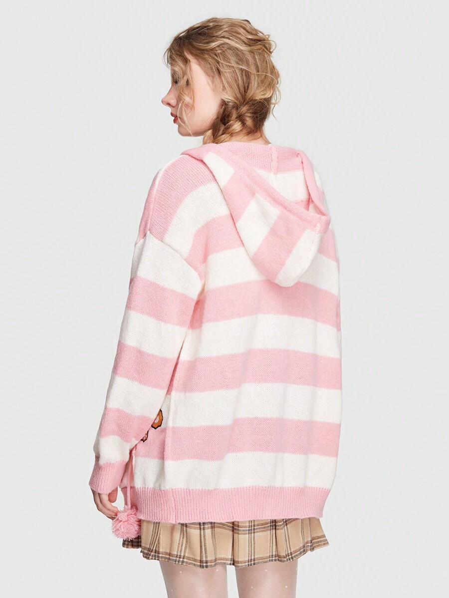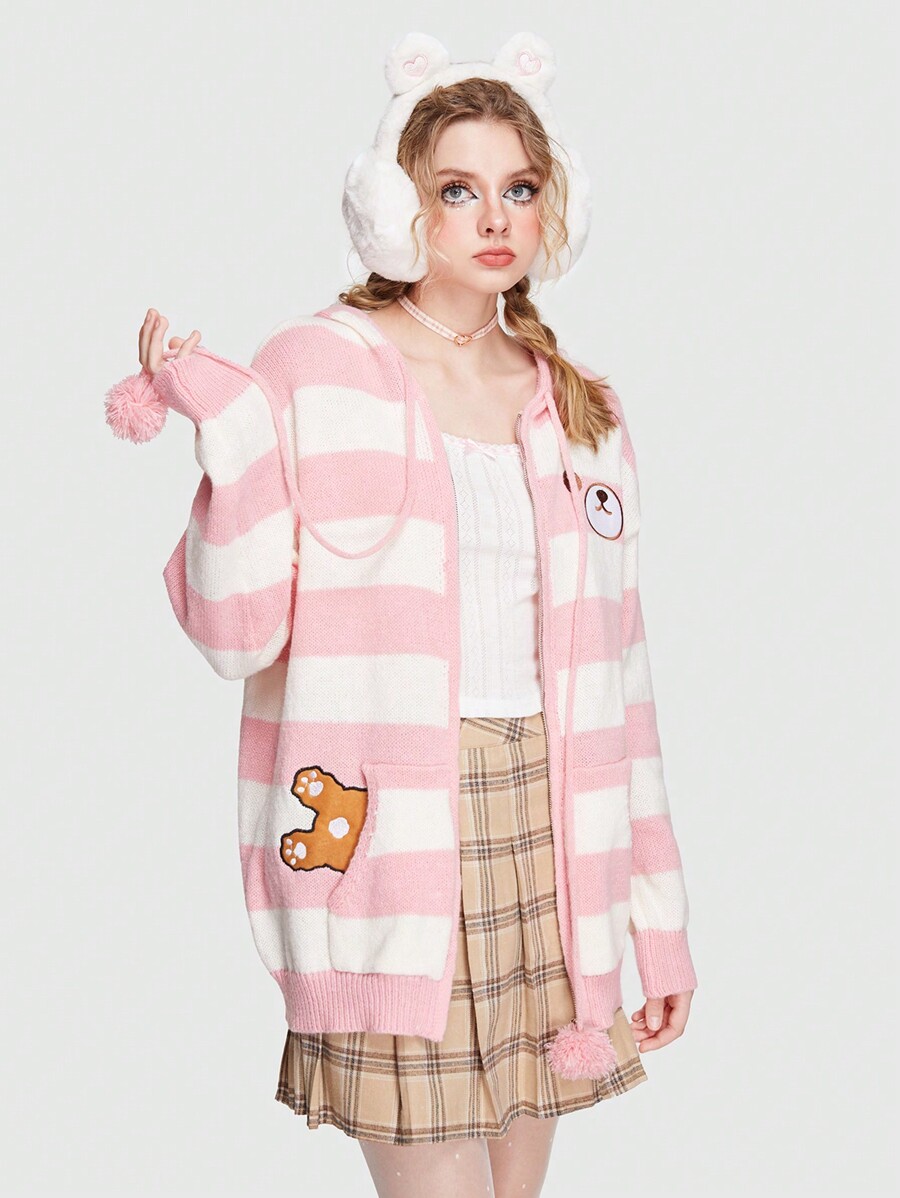 Kawaii Cardigan modelli righe con ricamo orso spalle cadenti con zip