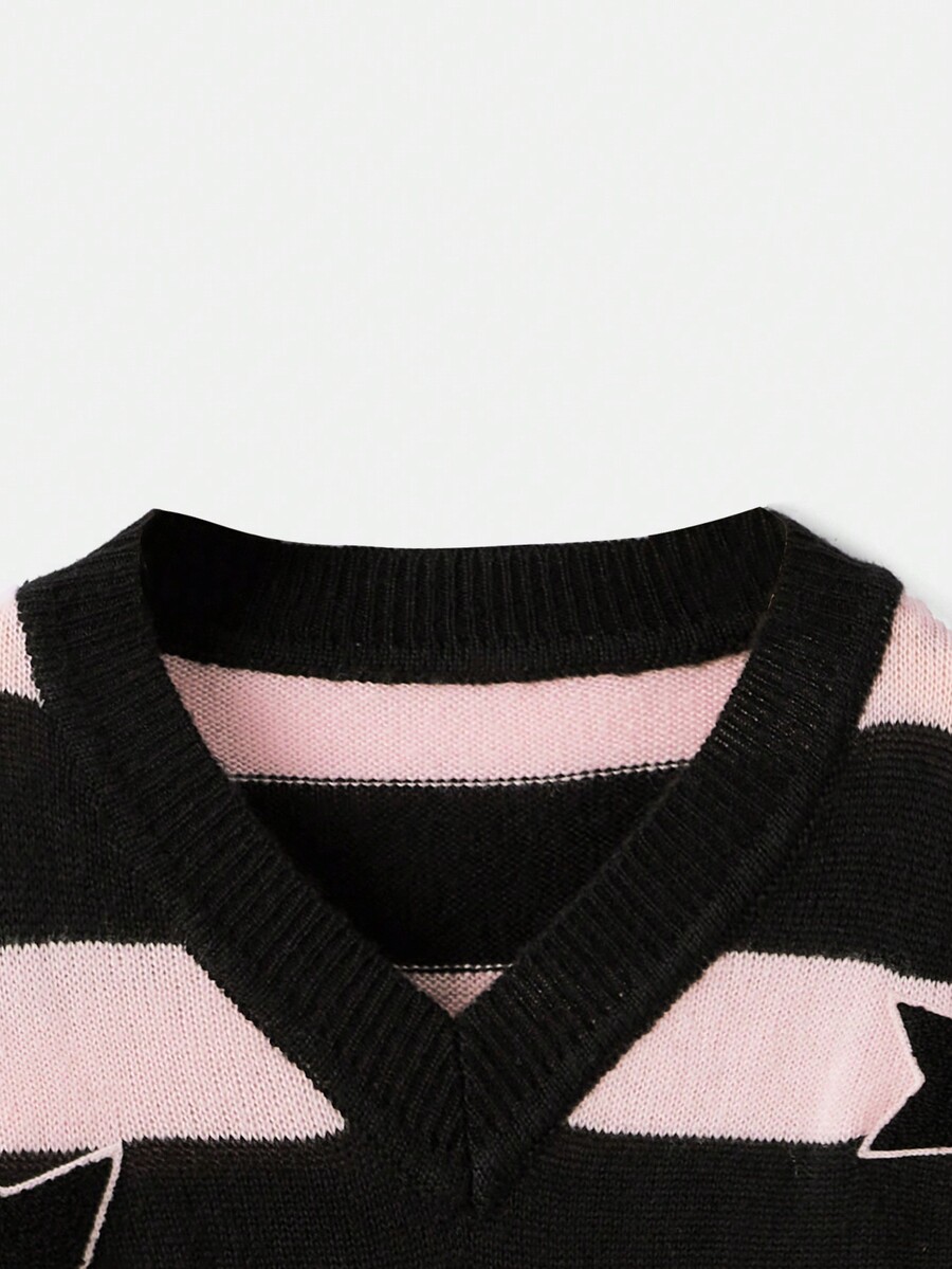 Kawaii Maglione righe con modello stelle spalle cadenti