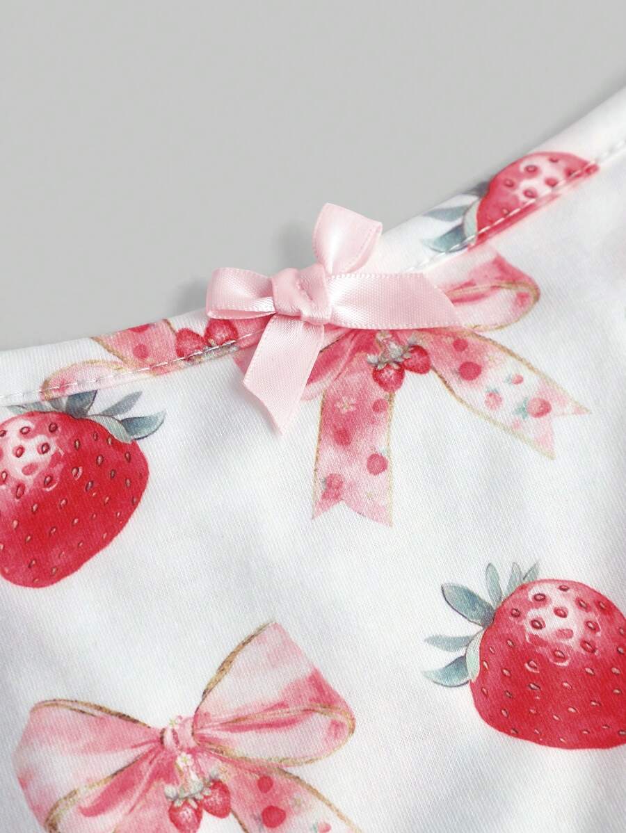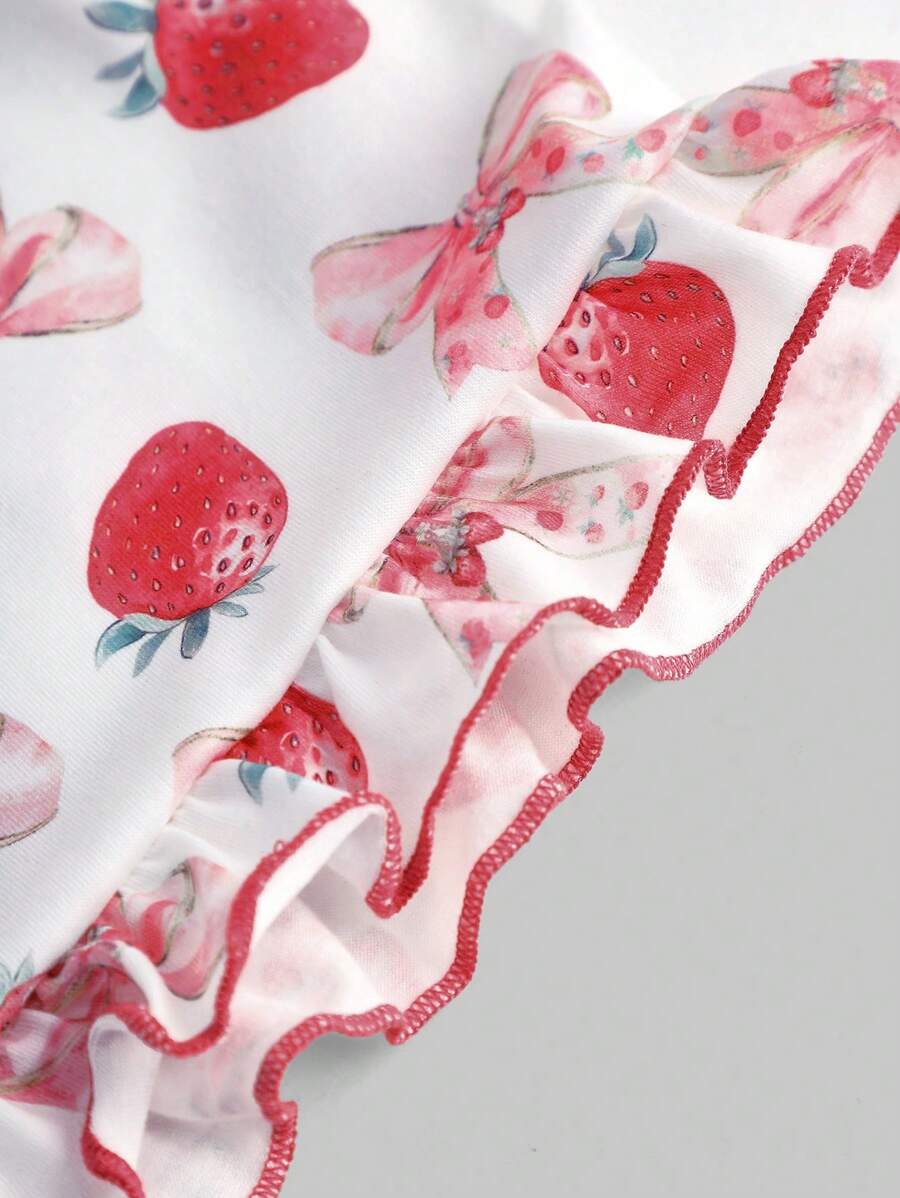 Kawaii Set da notte casual estivo da donna con top a canottiera con volant a fragole e fiocco