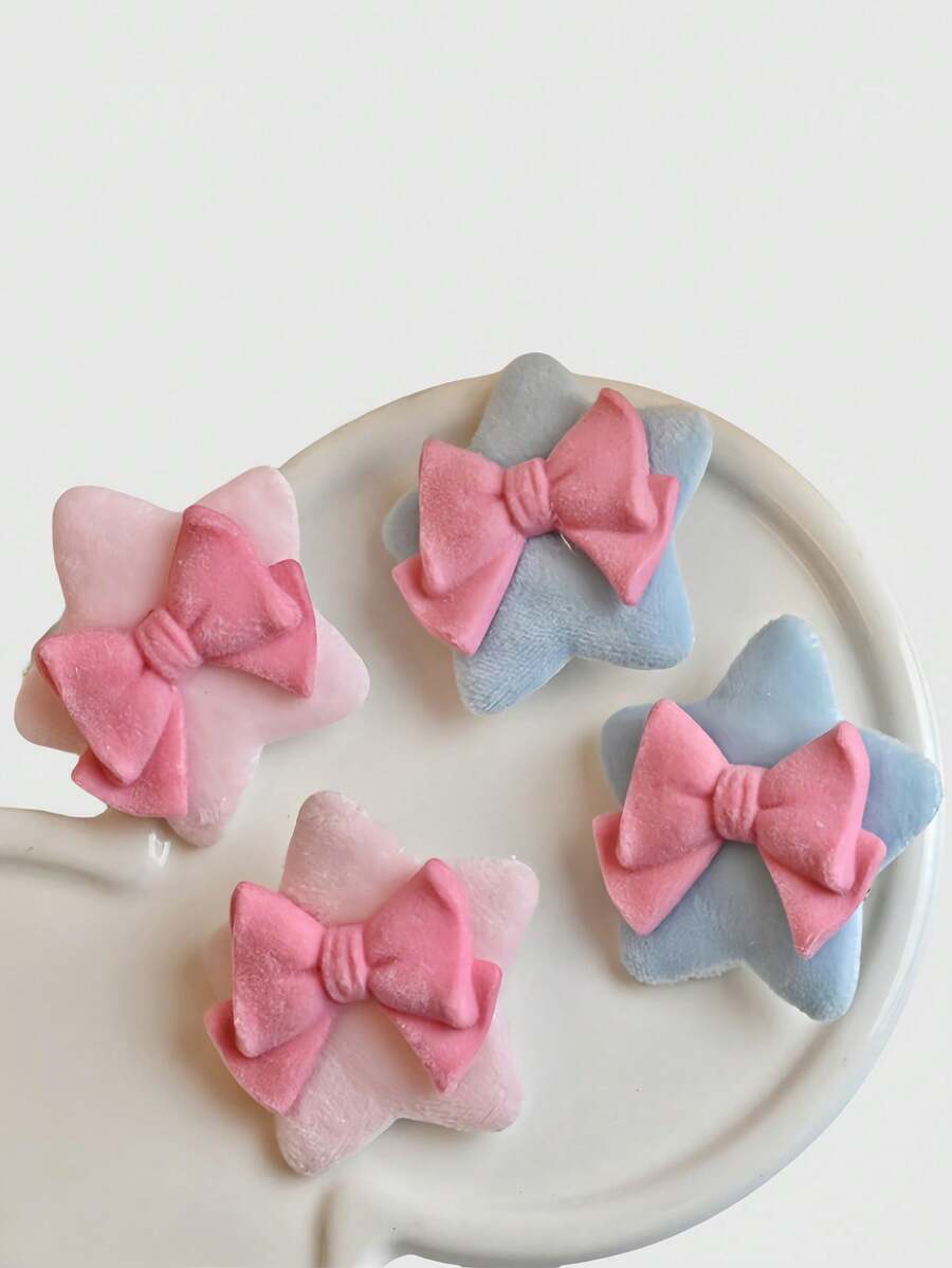 Kawaii Forcina per capelli dolce e carina con fiocco rosa, stelline e spugna, accessorio di nicchia carino per frangetta da ragazza