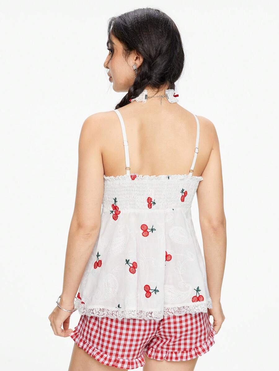 Kawaii Canotta In Pizzo Ricamato Ciliegia Dolce E Adorabile