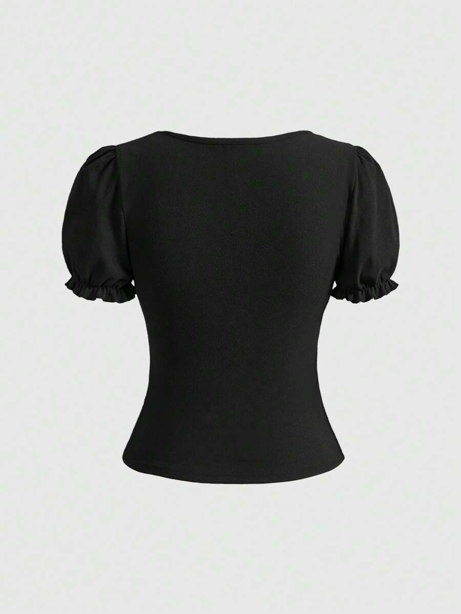 Kawaii Blusa bianca e nera da donna con maniche a petalo, stile dolce ragazza 2 in 1