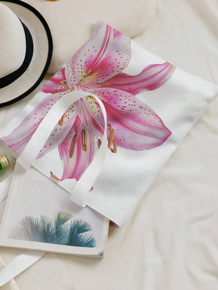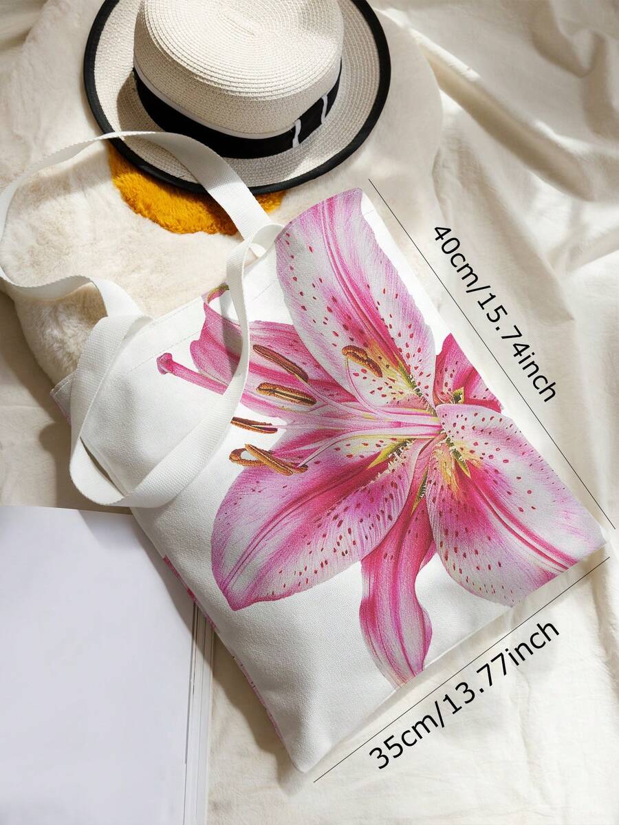 Kawaii Borsa a tracolla in tela con stampa floreale grande, reversibile, adatta per viaggi e pendolarismo, con motivo a fiori rosa