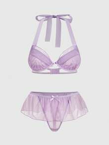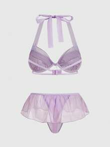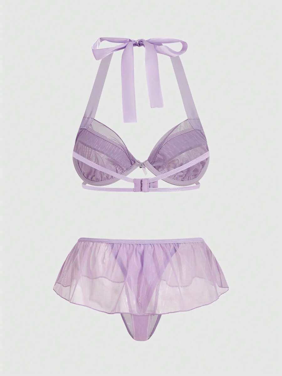 Kawaii Set di lingerie sexy composto da reggiseno a balconcino con ferretto e volant, e slip con volant, in stile romantico e innocente da San Valentino