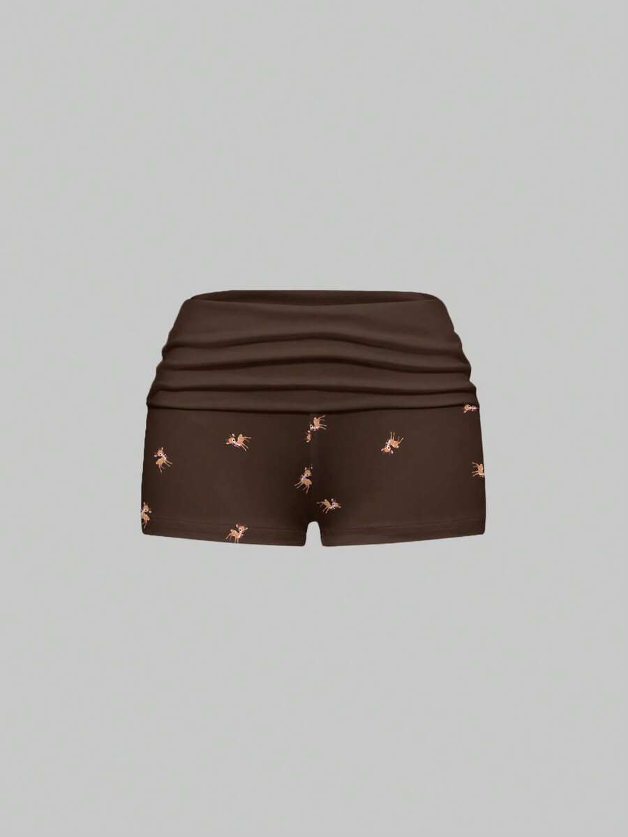 Kawaii Pantaloncini vintage e carini da donna con stampa di cervi in stile Y2K