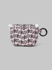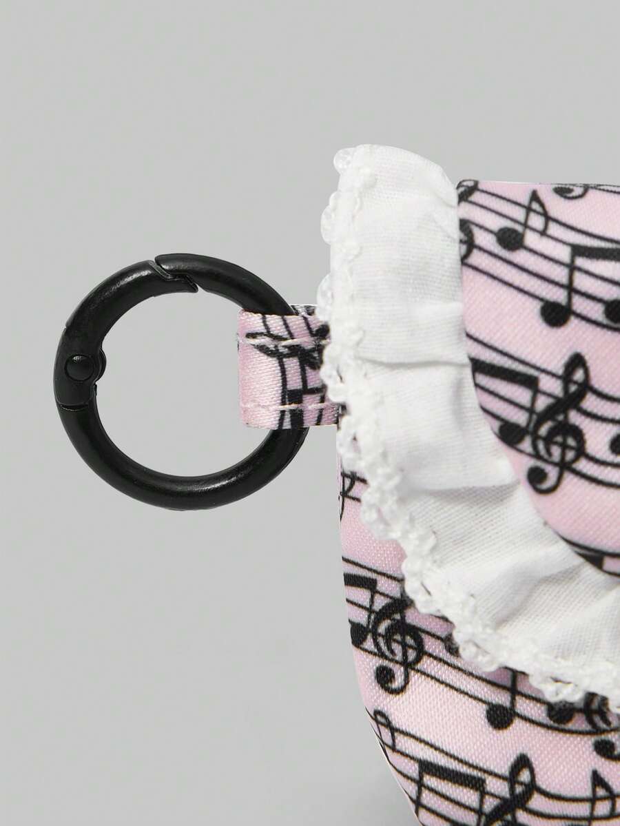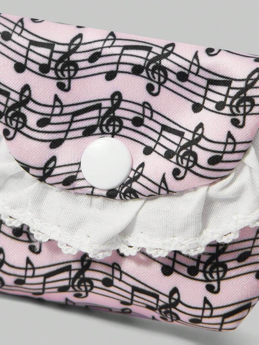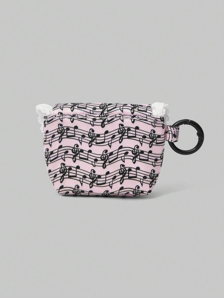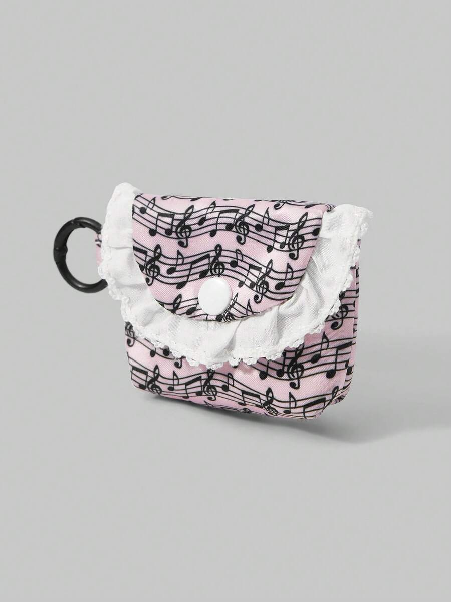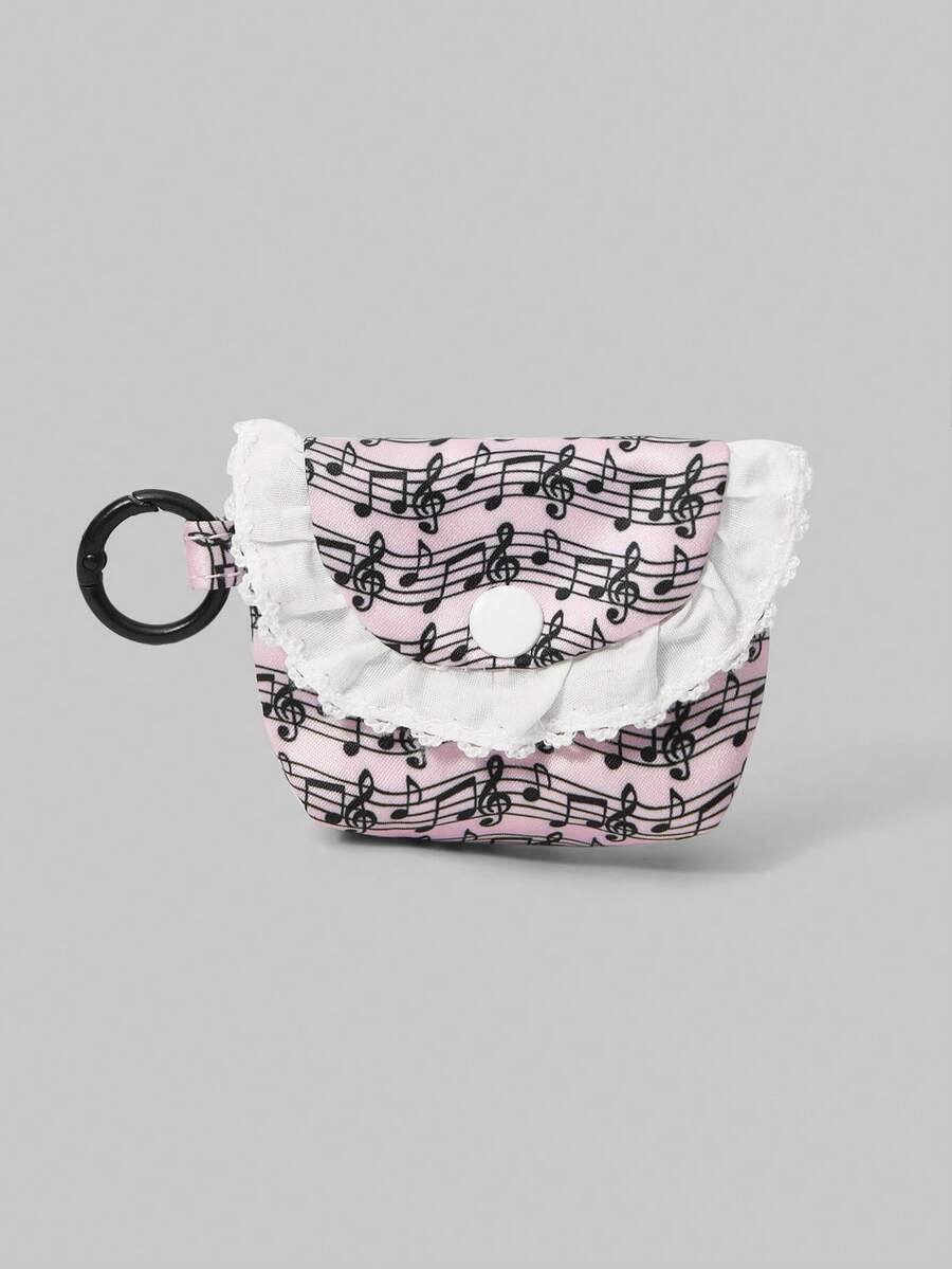 Kawaii Pochette portatile mini in pizzo bianco con motivo a onde e note musicali, portamonete, custodia per auricolari