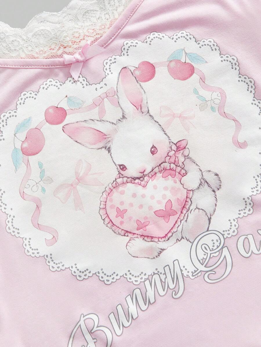 Kawaii Outfit da donna carino e femminile composto da 2 pezzi con stampa di coniglietti e fiocchi
