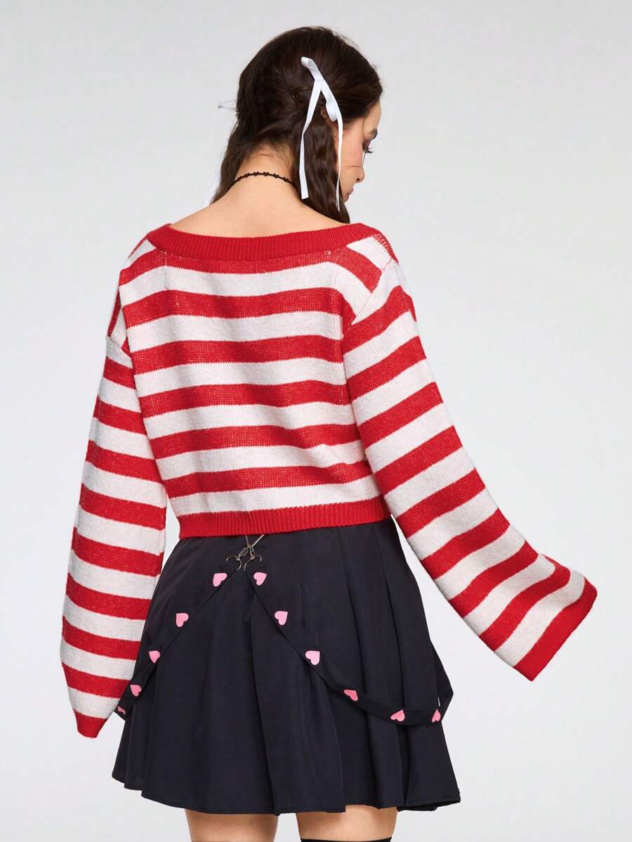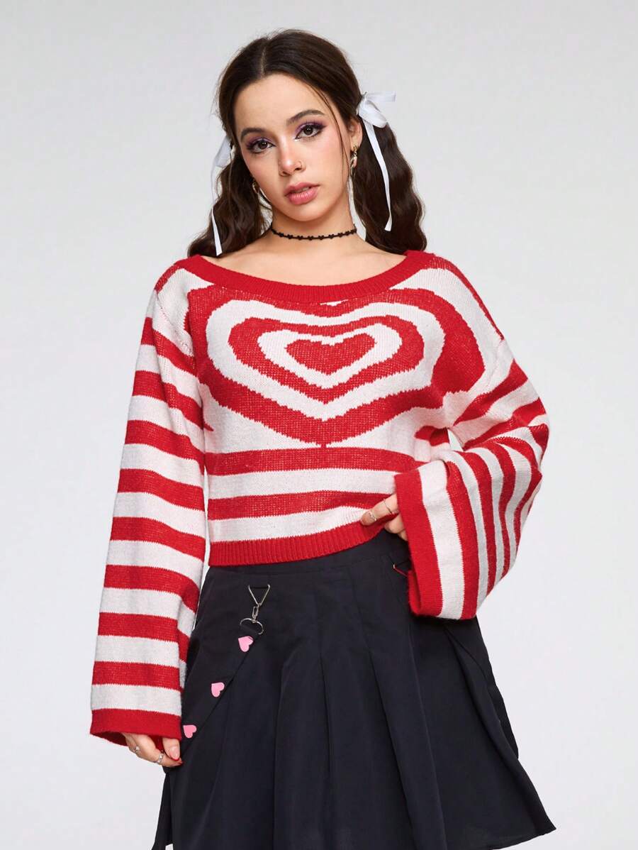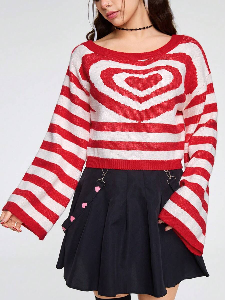 Kawaii Felpa donna a righe cuore collo asimmetrico