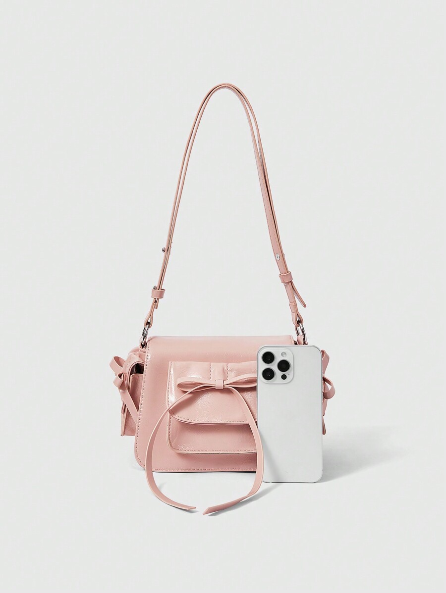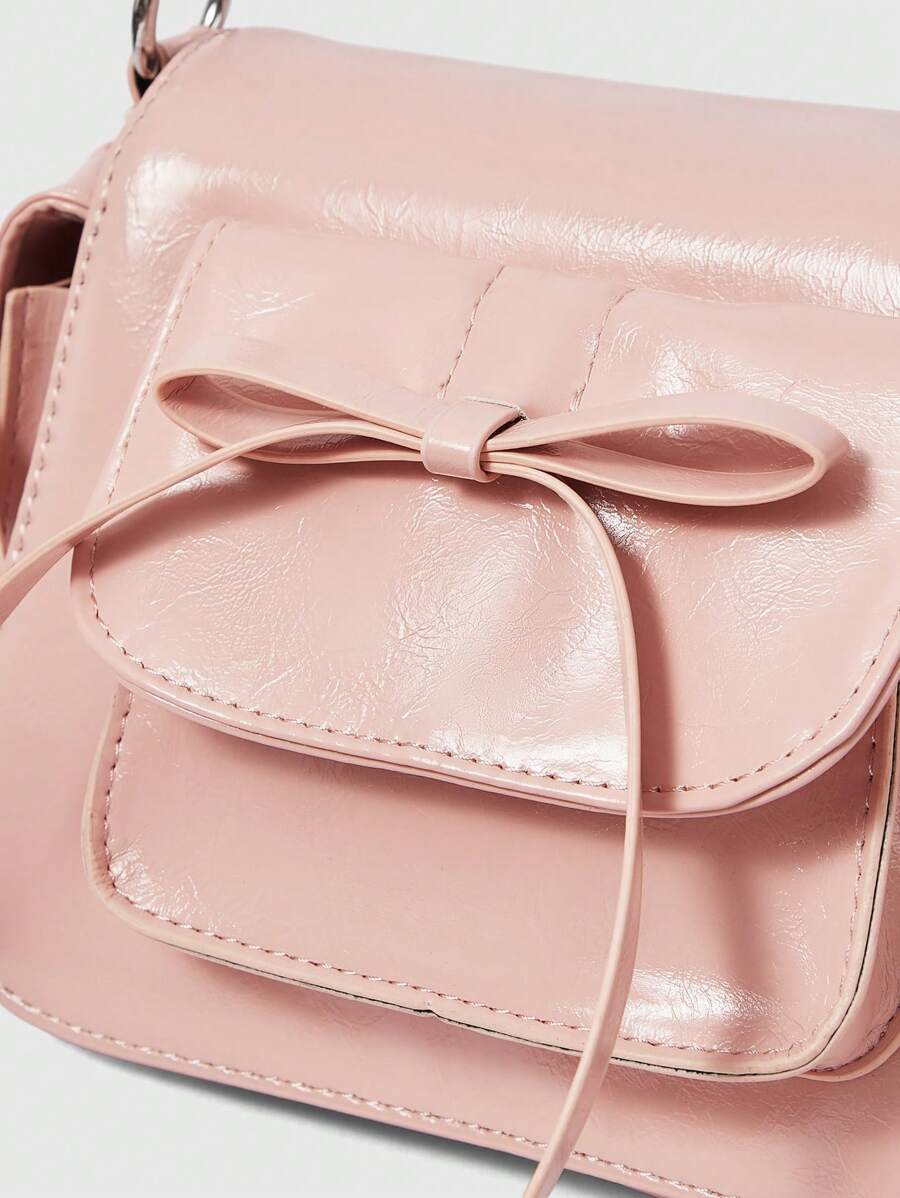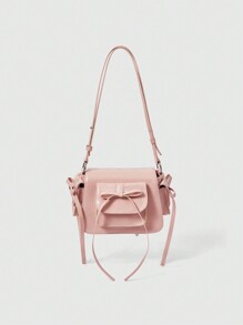 Kawaii Borsa a spalla casual da donna con decorazione a fiocco, adatta per uso quotidiano e pendolari