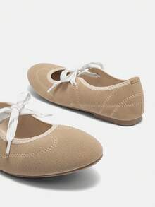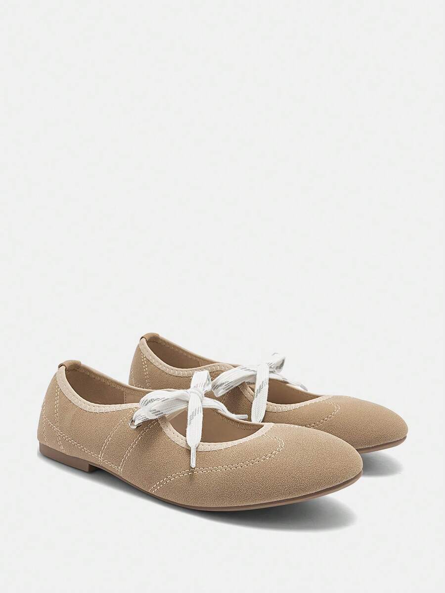 Kawaii Scarpe da donna casual con lacci, piatte e morbide, con punta tonda, ballerine color nudo, adatte per vacanze estive, estive, ritorno a scuola, outfit da studente, Natale, autunno, Capodanno
