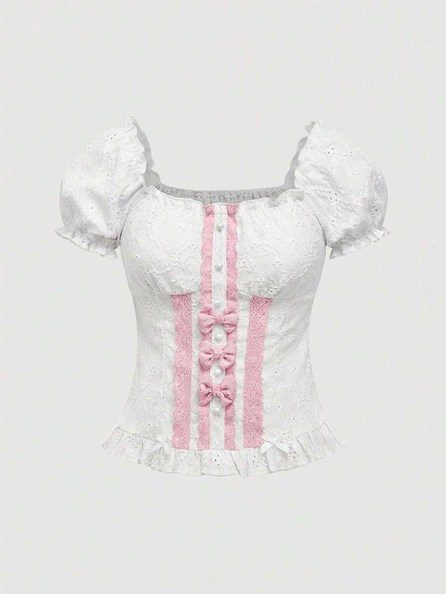 Kawaii Camicetta da donna con fiocco in vita