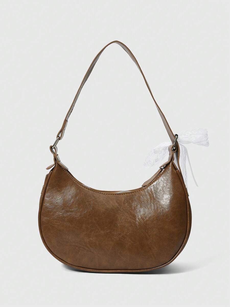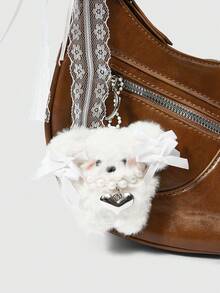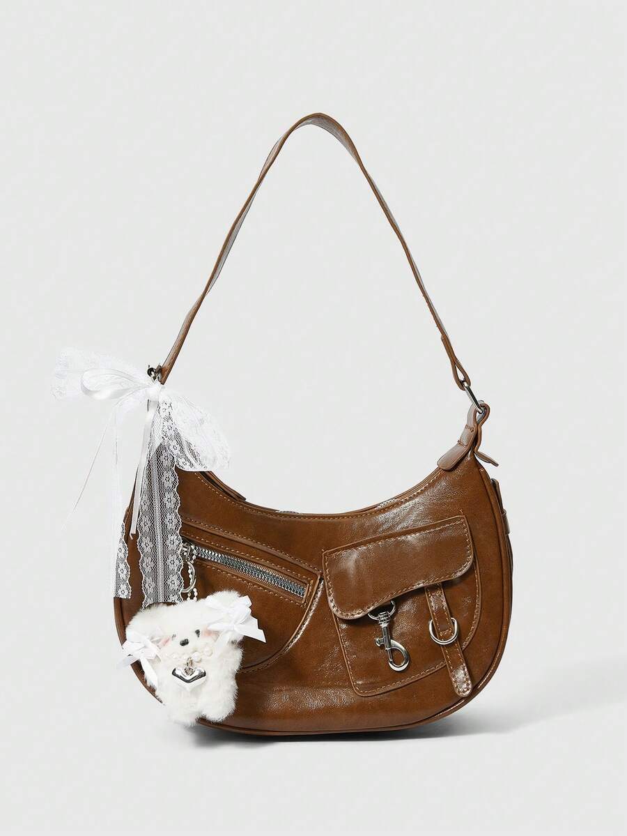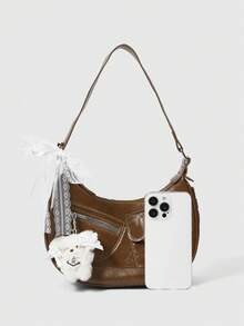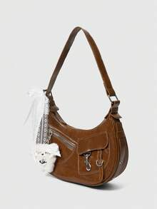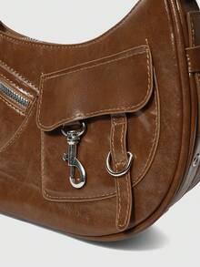 Kawaii Borsa da motociclista marrone con bottoni, di moda per uso quotidiano e pendolarismo, da donna