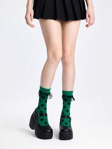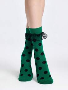 Kawaii Calzini alla caviglia da donna con motivo a pois, in rete con inserti e bordi a volant