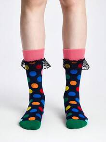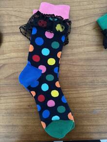 Kawaii Calzini alla caviglia da donna con motivo a pois, in rete con inserti e bordi a volant