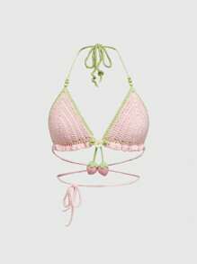 Kawaii Maglione in maglia con motivo a fragole fatto a mano, con scollo ad aletta, sexy, colore rosa, per donna
