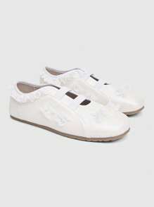 Kawaii Ballerine da donna con bordo in pizzo, scarpe eleganti da donna con lacci incrociati stile Mary Jane, scarpe da ballo piatte casual e confortevoli