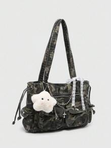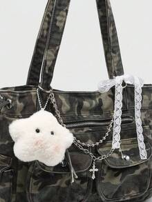 Kawaii Borsa a tracolla da donna vintage con decorazione a croce e cuore, effetto degradé mimetico, fiocco, ampia capacità e tasche multiple