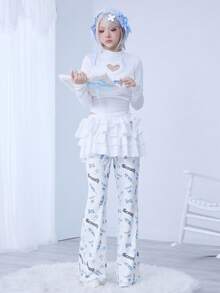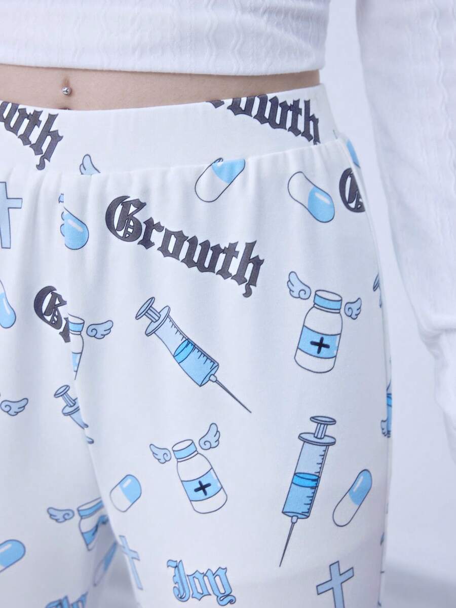 Kawaii Pantaloni casual da donna con stampa a croce di pillole della sottocultura Yandere