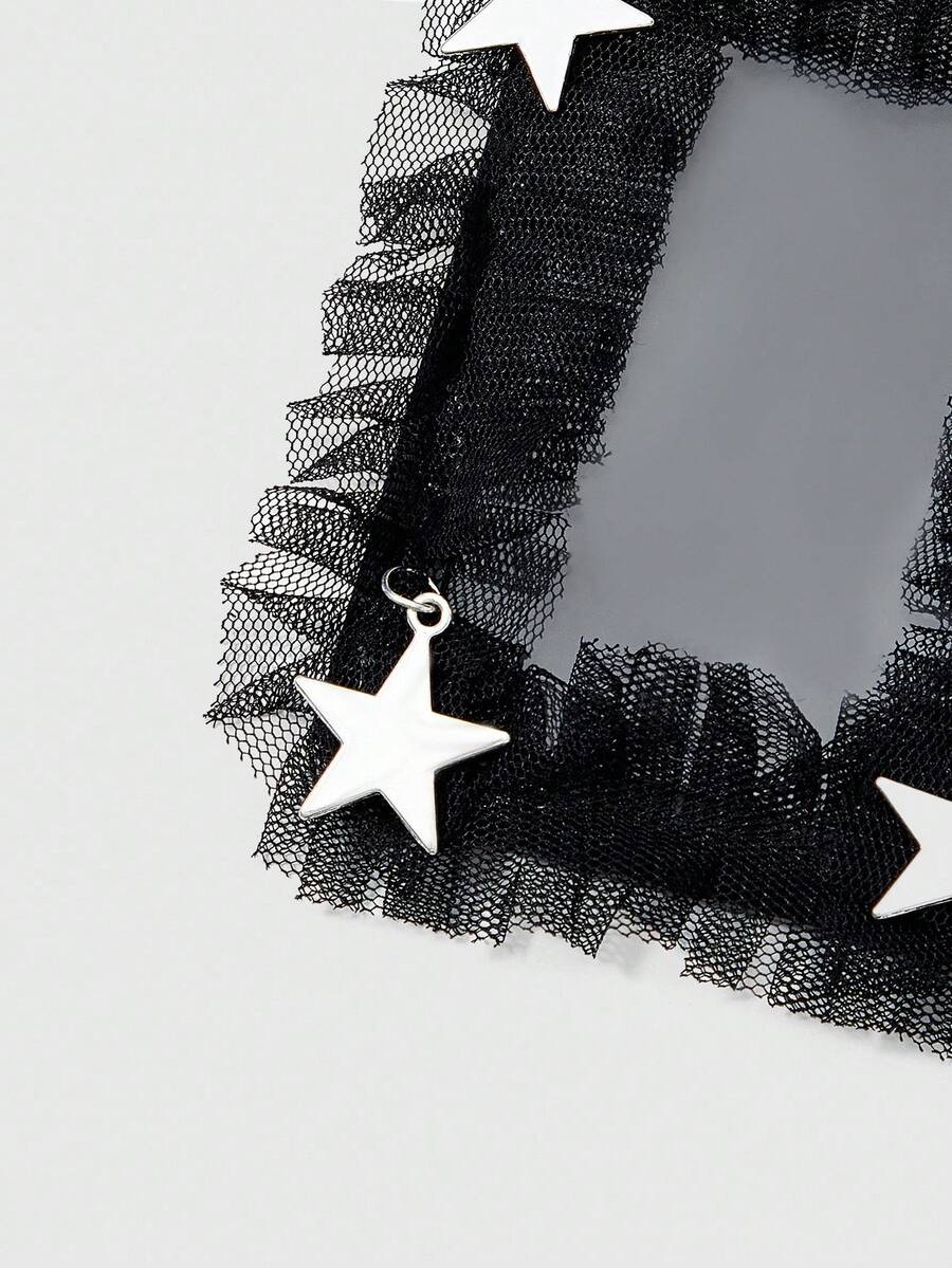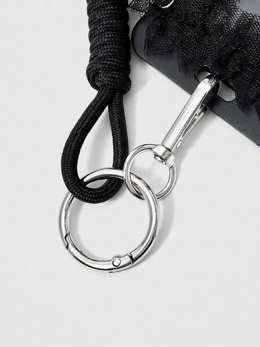 Kawaii Portachiavi in stile gotico vintage Y2K, in pelle con intrecci a stella e pizzo