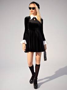 Abiti con apertura a goccia Colletto a contrasto con manica svasata di velluto