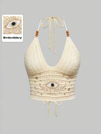 Hippie Top A Maglia Da Collo Halter Da Donna Con Ricamo Floreale