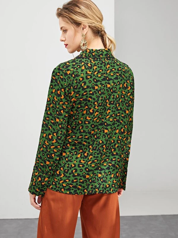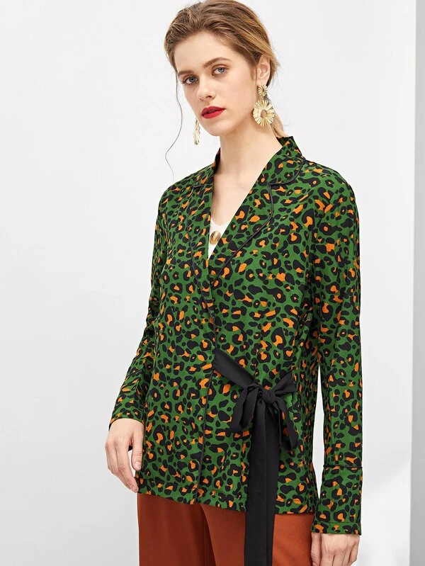 Giacca avvolta leoparda con nodo sul davanti