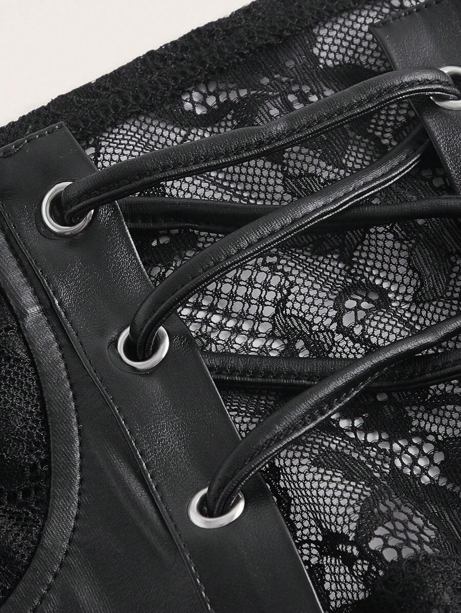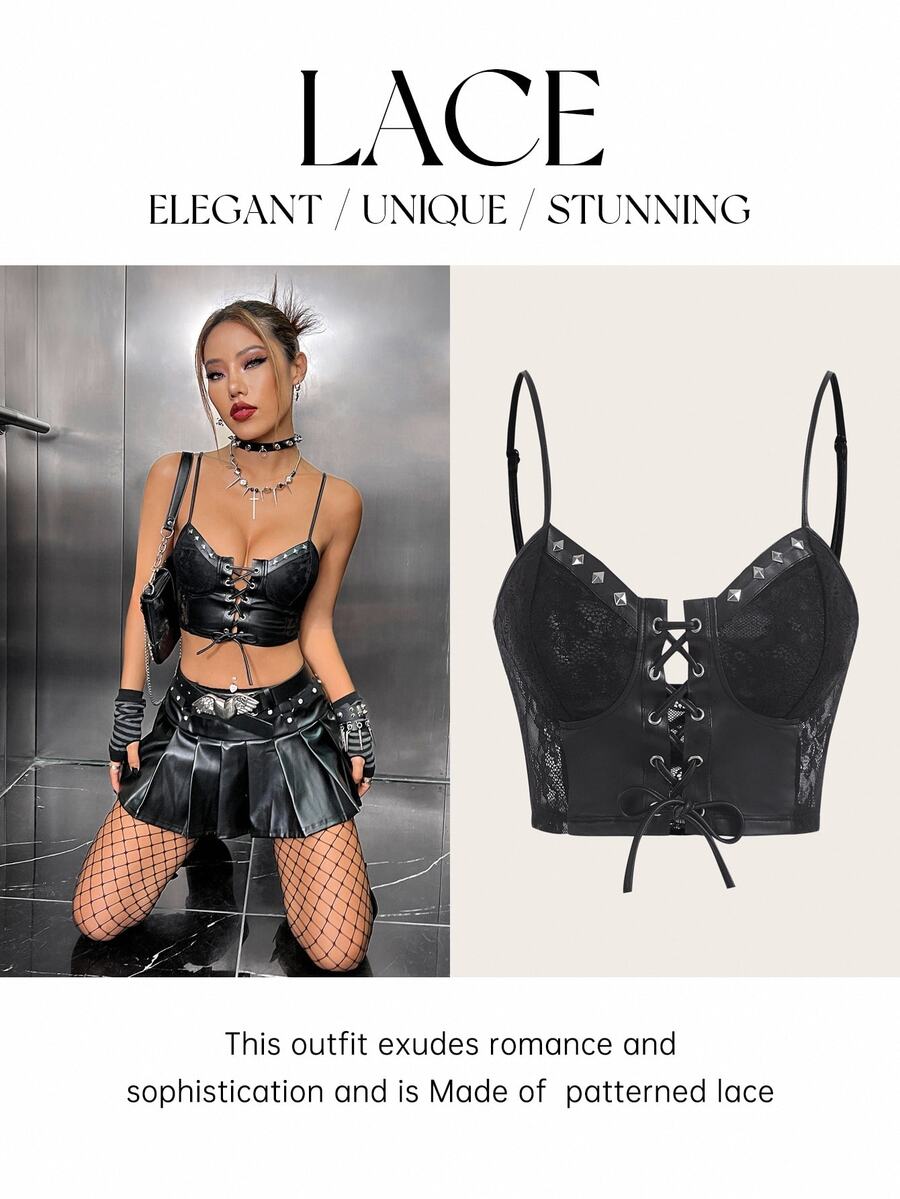 Top corto con scollo a V in pizzo e lacci, adatto per la scuola