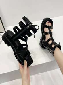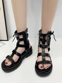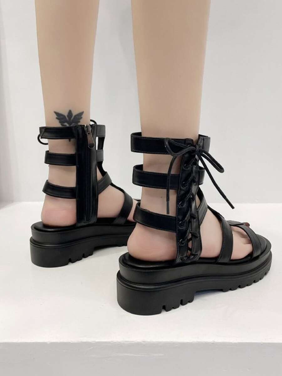 Sandali alla schiava lacci dettaglio lato con cerniera piattaforma