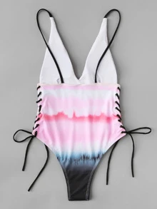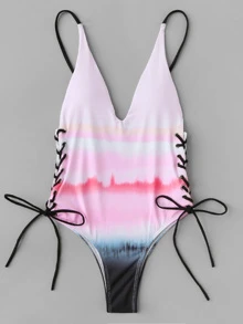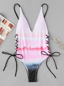 Costume da bagno a tinta unita con coulisse