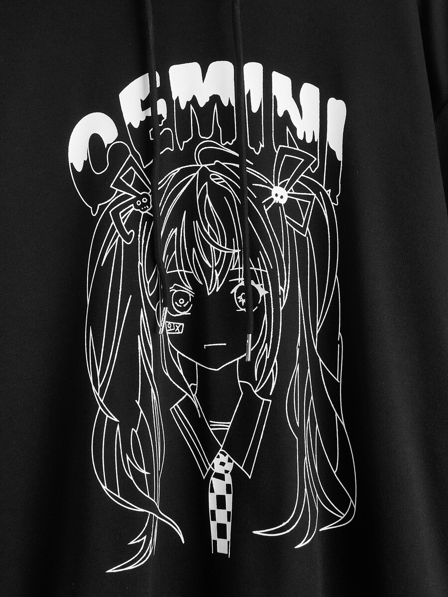 Felpa con cappuccio con grafica ritratto e lettera spalle cadenti con coulisse