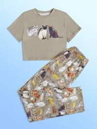 Rosie con stampa gatto Maglietta & a quadri Pantaloni Set pigiama