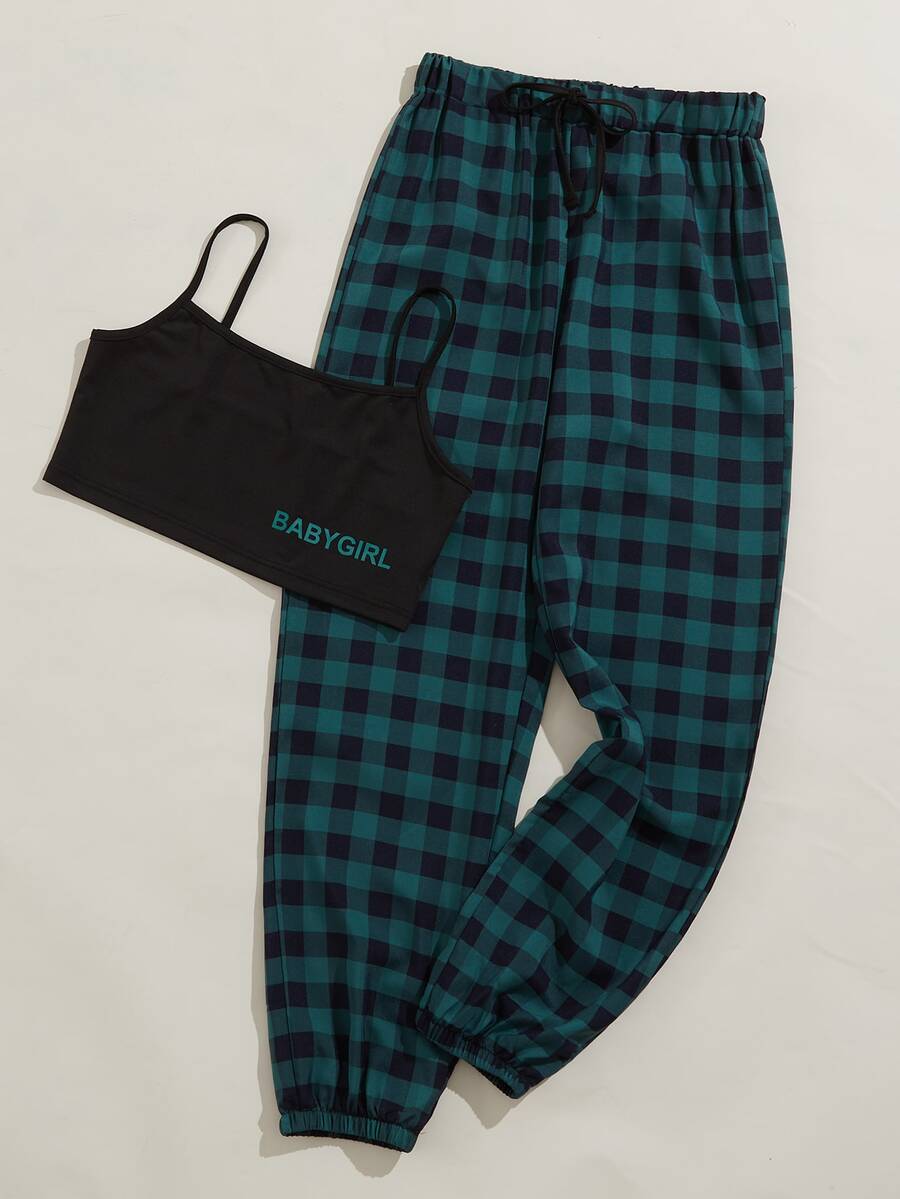 Set pigiama top con bretelle sottile grafica lettera e Pantaloni a quadri