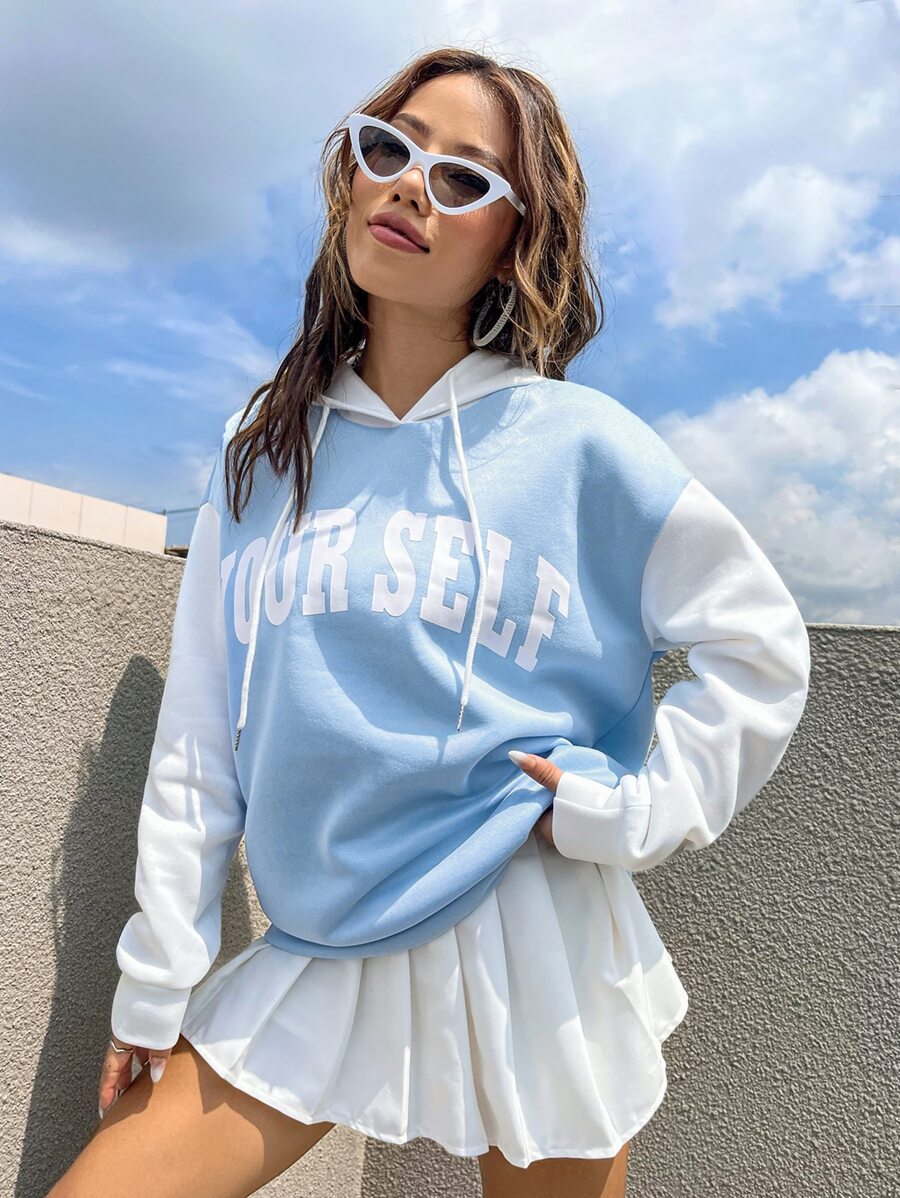 Felpa con cappuccio con grafica lettera spalle cadenti con coulisse