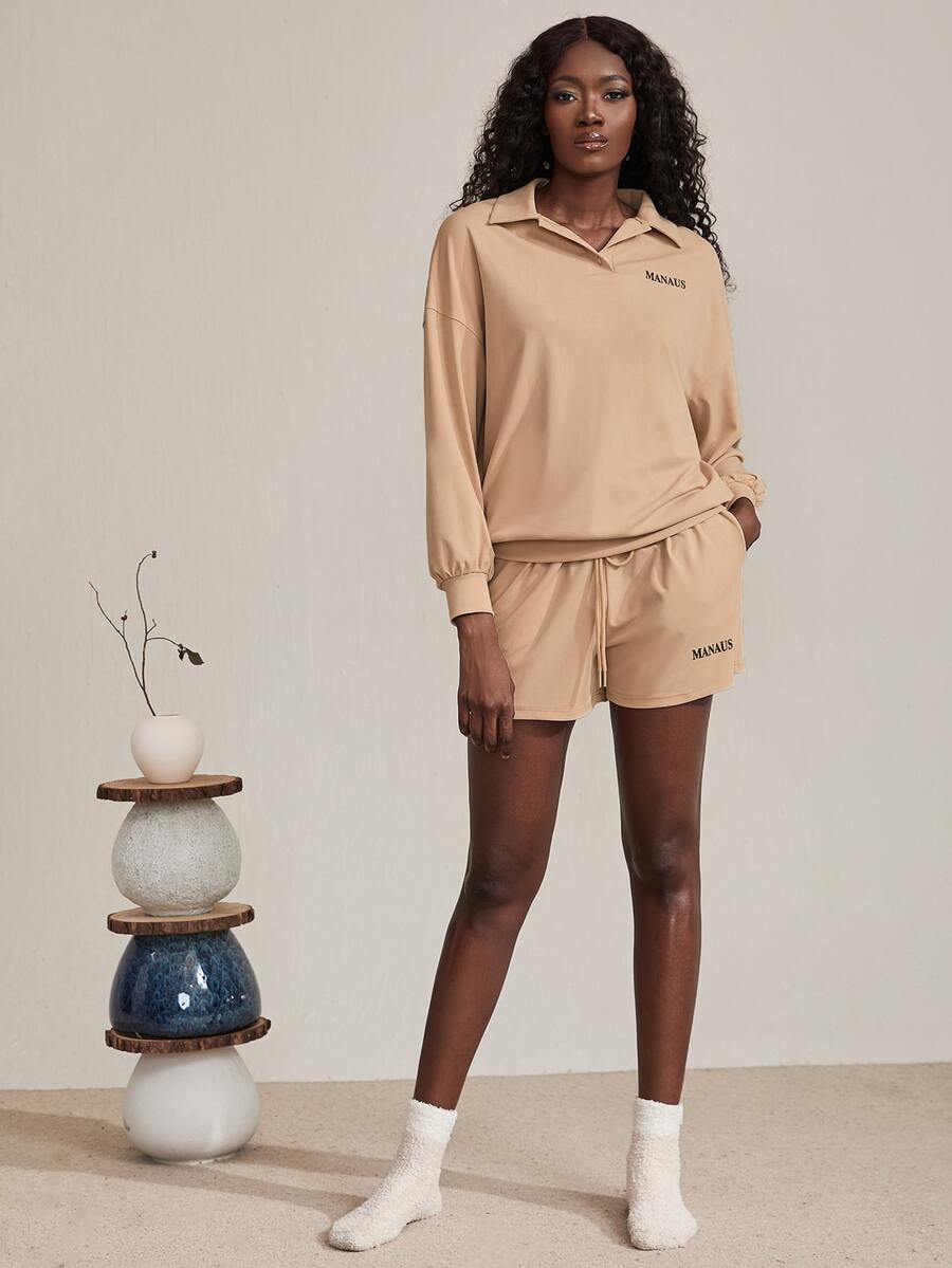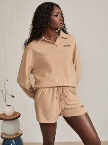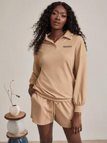 con grafica lettera spalle cadenti felpe & shorts