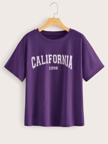 Maglietta viola con lettera grafica