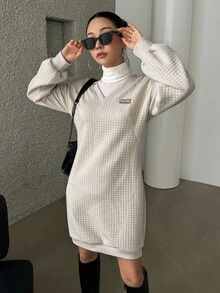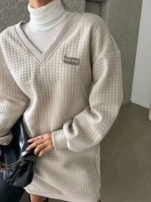 Abito felpa toppa con lettera spalle cadenti senza maglietta