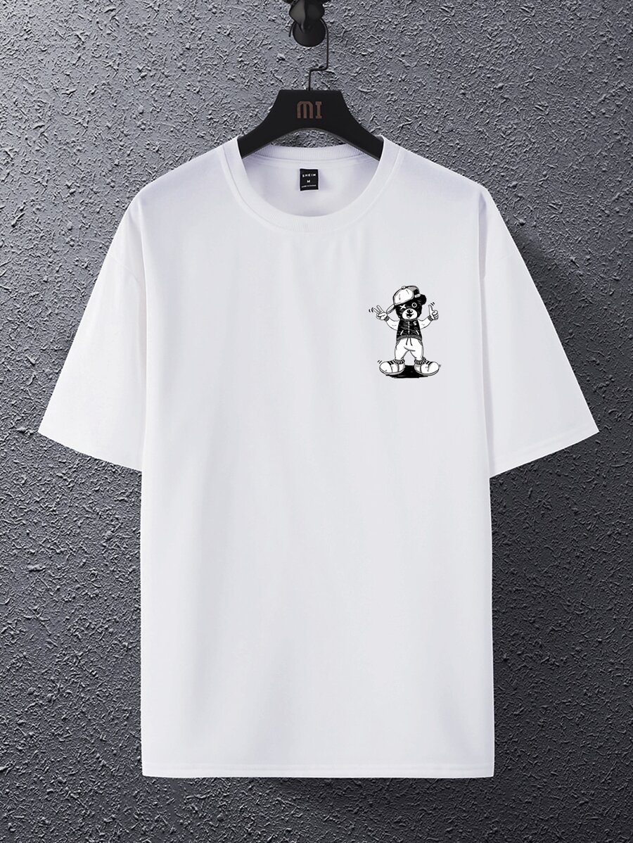 T-shirt casual da uomo a maniche corte, scollo rotondo, vestibilità morbida, con grafica a cartone animato