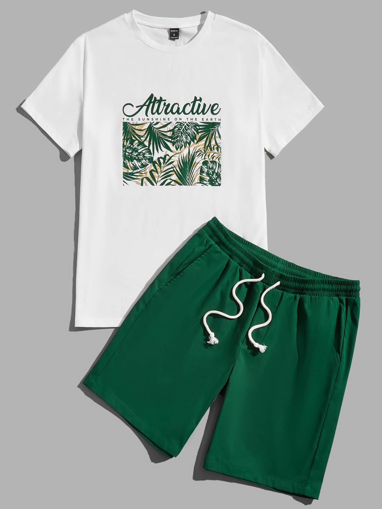 GENTILAND Uomo Maglietta con stampa lettera e tropicale & Shorts con coulisse a vita