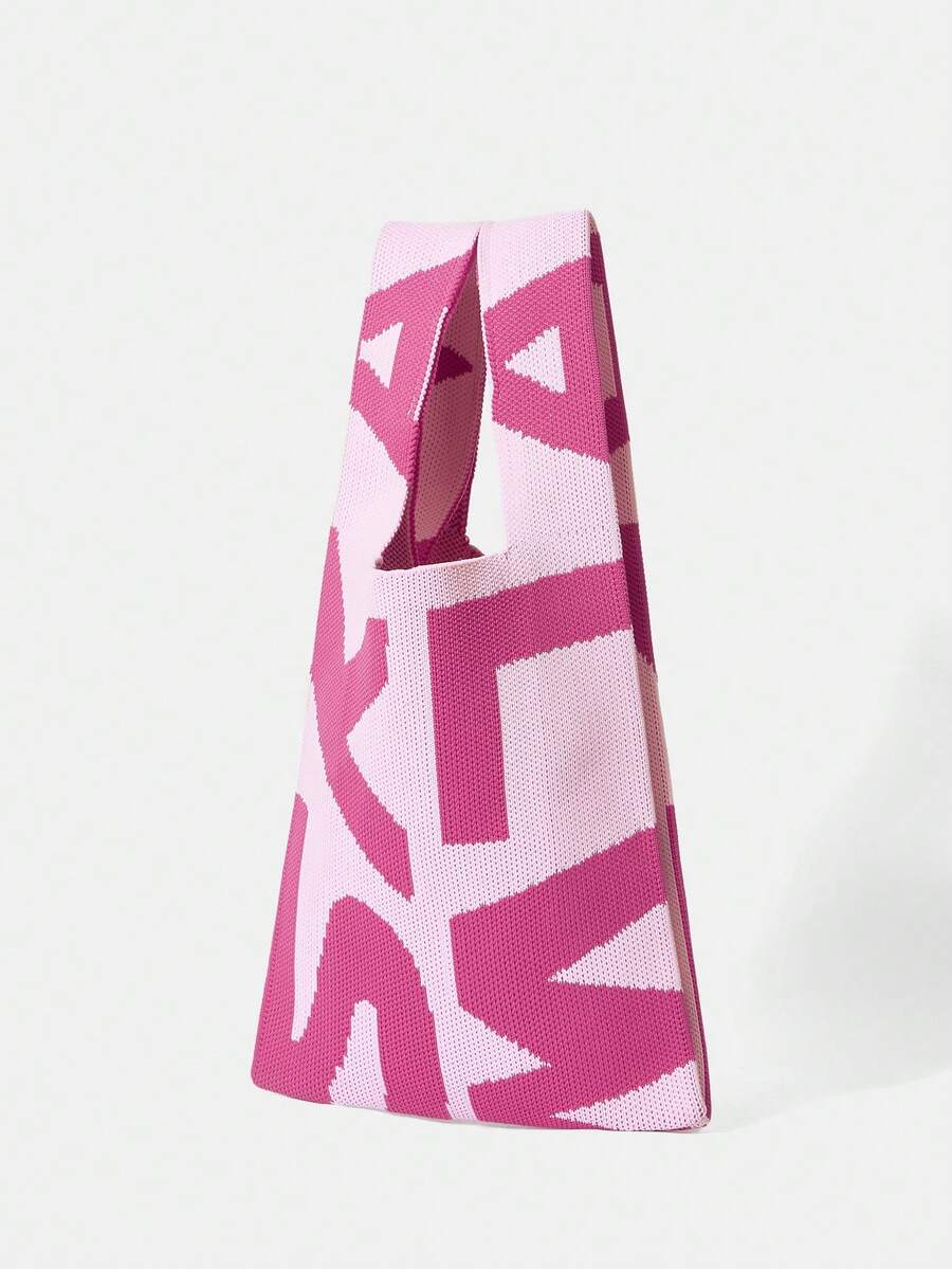 Borsa all'uncinetto medio casual con grafica lettera per shopping