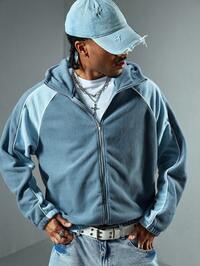 Street Life Felpa con cappuccio in velluto a blocchi di colore da uomo, felpa a maniche lunghe da streetwear