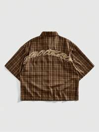 Camicia casual da uomo a maniche corte in tela scozzese con stampa a lettere
