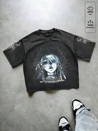 Anime Maglietta a maniche corte con scollo tondo, stile vintage lavato con acido, adatta per primavera ed estate, scuola, stile anni 2000
