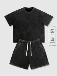 Set estivo casual da uomo composto da t-shirt a maniche corte lavata e pantaloncini con coulisse in vita, adatto per uso quotidiano e spostamenti