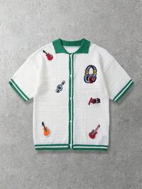 Camicia casual da uomo a maniche corte con ricamo sui bottoni
