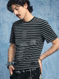 Street Life Maglietta a maniche corte aderente da uomo con righe e borchie