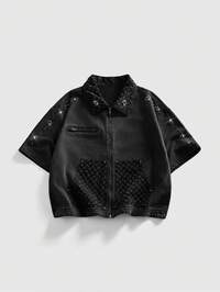Street Life Giacca di jeans oversize da uomo con decorazioni in perle