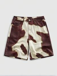 Pantaloncini di jeans casual da uomo con stampa a motivo mucca, stile di strada alla moda per le vacanze estive