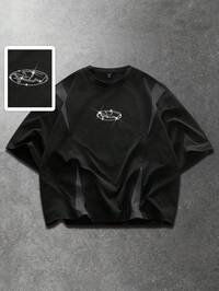 Grunge Punk maglietta a maniche corte da uomo con decorazione a lettere scure e scollo rotondo