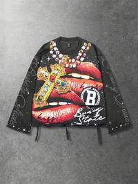 Street Life Maglietta a maniche lunghe da uomo alla moda con stampa a labbra